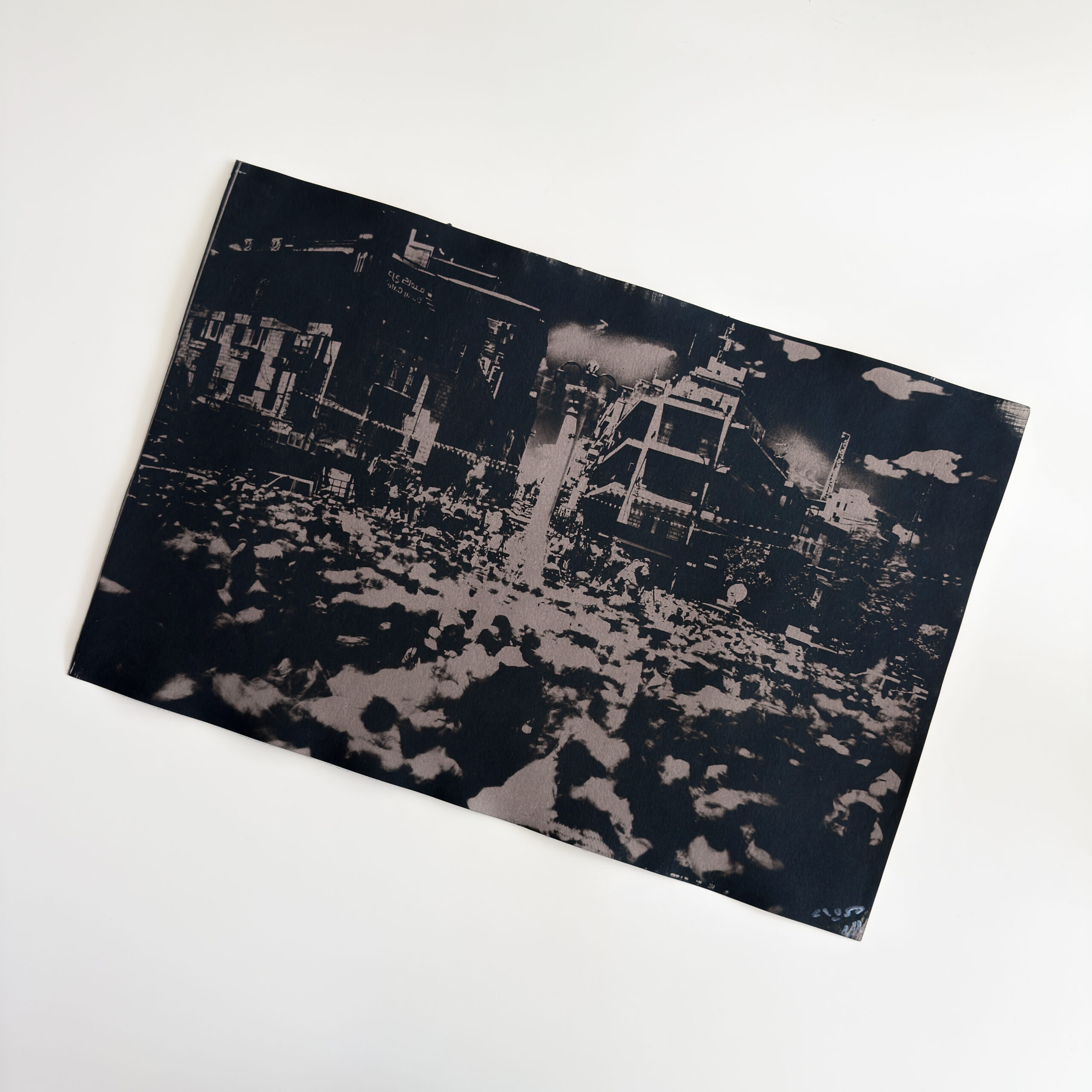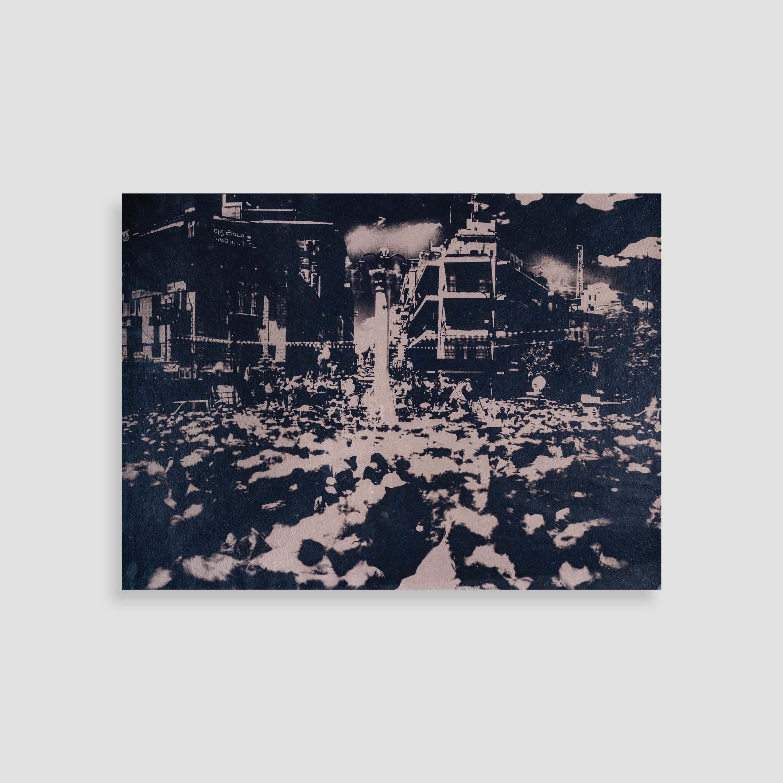 Sari Tarazi’s practice explores light, perception, and the chemistry of image-making, blending analog and digital processes to emphasize materiality and deliberate slowness. Working with photography and montage, his work engages with the socio-political landscape of Palestine, often drawing from images captured during street demonstrations. Through this process, Tarazi constructs layered visual narratives that bear witness to protest, resilience, and everyday life under occupation.